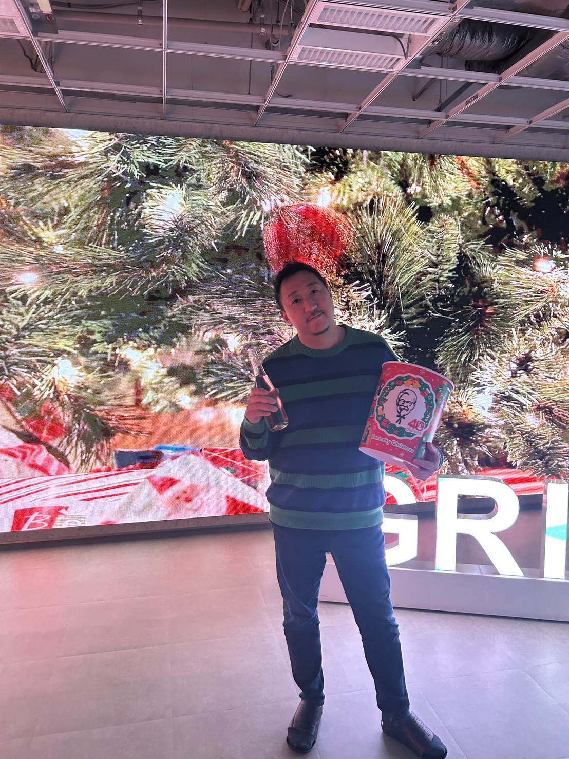 当日は、会長がケンタッキーフライドチキンやピザ、ポテト、グラタンなど、クリスマスらしい料理を用意してくださり、会場に入った瞬間から自然とテンションが上がる雰囲気に。テーブルいっぱいに並んだ料理を囲みながら、それぞれが好きなタイミングで食事を楽しみ、会話も自然と広がっていきました🍗🍟